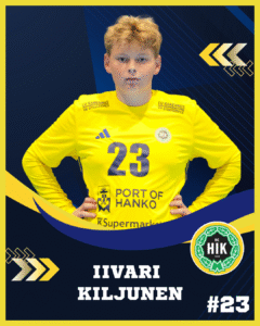 23 Iivari Kiljunen 2. Allan Westerholm3. Adrian Nyman4. Rasmus Holmberg6. Jimmy Sinkko7. Elias Sandell8. Benjamin Nyman11. Alex Vahtera13. Nina Laxell14. Xander Wikman15. Adele Rosendahl19. Melwin Himberg23. Iivari Kiljunen29. Arthur Österlund33. Paul Böckerman35. Alec Grundström36. Smilla Cehlin37. Amanda Ekqvist Nuvarande lagHC Hik