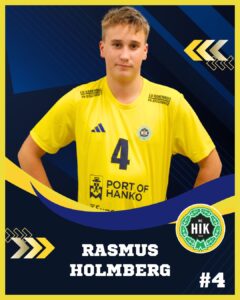 4 Rasmus Holmberg 2. Allan Westerholm3. Adrian Nyman4. Rasmus Holmberg6. Jimmy Sinkko7. Elias Sandell8. Benjamin Nyman11. Alex Vahtera13. Nina Laxell14. Xander Wikman15. Adele Rosendahl19. Melwin Himberg23. Iivari Kiljunen29. Arthur Österlund33. Paul Böckerman35. Alec Grundström36. Smilla Cehlin37. Amanda Ekqvist Nuvarande lagHC Hik