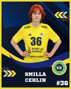 36 Smilla Cehlin 2. Allan Westerholm3. Adrian Nyman4. Rasmus Holmberg6. Jimmy Sinkko7. Elias Sandell8. Benjamin Nyman11. Alex Vahtera13. Nina Laxell14. Xander Wikman15. Adele Rosendahl19. Melwin Himberg23. Iivari Kiljunen29. Arthur Österlund33. Paul Böckerman35. Alec Grundström36. Smilla Cehlin37. Amanda Ekqvist Nuvarande lagHC Hik